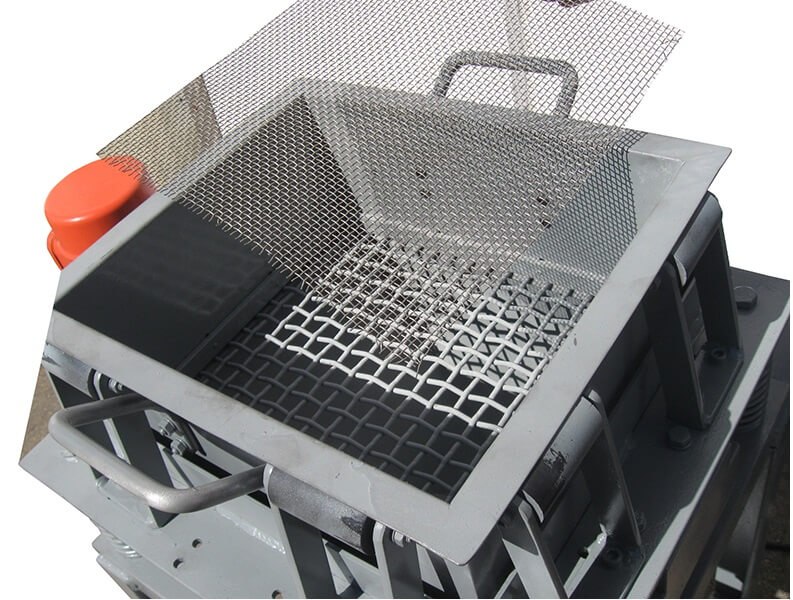 By pre-screening your material before crushing fines that cake easily, your can reduce or eliminate the packing load typically placed on the jaw crusher. This vibratory screen (scalping screen), can be provided with a sieve suited to your needs. It will remove the sample portion already smaller than the final size. This speeds up the crushing process, improves efficiency and decreases wear on the crusher.